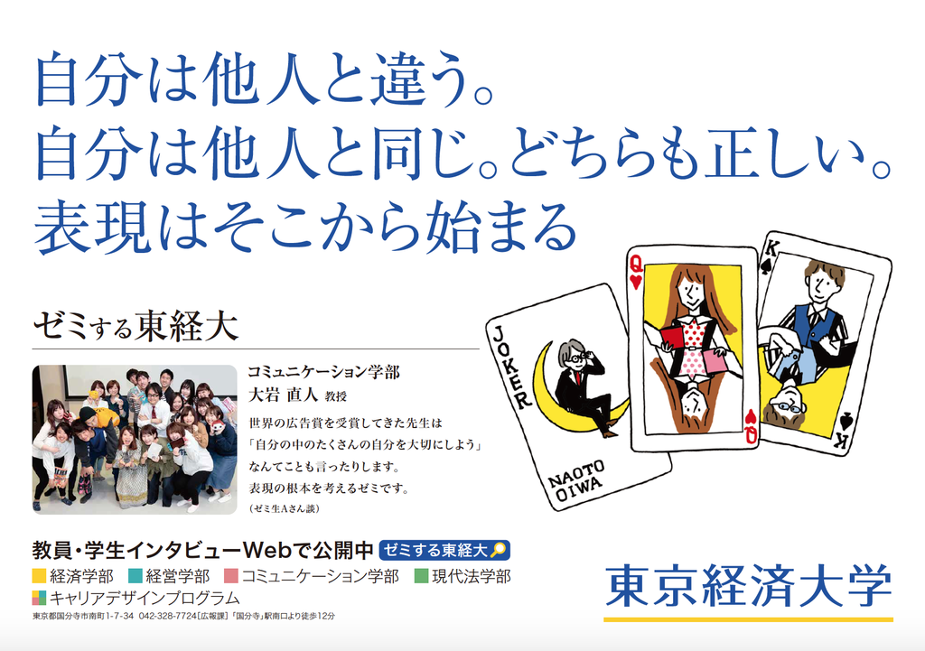 大学では「ゼミする東経大」と銘打って毎月各ゼミナールの紹介をし、それをJR中央線の窓上広告やHPで展開しているのですが、今月はワタクシのゼミナールの番です。
