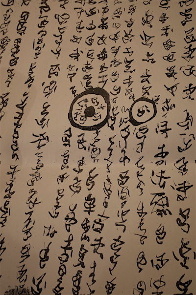 こ、これは、修行僧がふざけて書いた梵字の類いか、はたまた宇宙人の所業か?