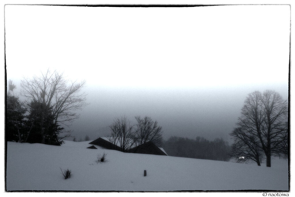 あたりが妙に暗い。まだ夕方の6時を過ぎたばかりだというのに空が真っ暗である。冬至に向かってどんどん日が短くなっているのはわかるが、まだ夕方の6時なのだ。なのに、この漆喰の闇。風はそよとも吹かぬ。大きな楢の木の脇を過ぎる時、突然右足がぬかるみに沈んだ。くるぶしまで泥に浸かる。立ち入り禁止の意味がわかった。先週まで続いていた大雨のせいで道がひどくぬかるんでいたのだ。
